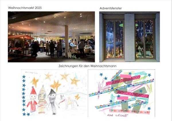 Der zweite Weihnachtsmarkt im Gässliacker steht vor der Tür. Im überdachten Aussenbereich, im Eingangsbereich des Hauses Limmat sowie im Eingangsbereich und Mehrzweckraum des Hauses Rhein können Sie sich auf zahlreiche Weihnachtsstände freuen – von schönen, selbstgemachten Produkten aus unseren Häusern bis hin zu kunstvollen Handwerksarbeiten externer Ausstellender. Natürlich darf auch das Kulinarische nicht fehlen: Für den kleinen bis grossen Hunger sowie für den «Gluscht» gibt es feine Leckereien – zum Verschenken oder gleich zum Geniessen. Glühwein, Punsch, Kaffee und Tee können sowohl drinnen im Restaurant als auch draussen in weihnachtlicher Stimmung genossen werden. Das Areal bietet viele Möglichkeiten – auch unsere drei Geissen im Gässliacker-Park freuen sich ebenfalls auf Ihren Besuch. Um 18 Uhr eröffnen wir feierlich das Adventsfenster durch eine Mitarbeitende der Alltagsgestaltung – dekoriert mit viel Liebe von Tagesgästen und Bewohnenden. Ein Überraschungsbesuch darf am Samichlaustag nicht fehlen – lassen Sie sich überraschen. Wir freuen uns auf Sie! Datum & Zeit 06. Dezember 2025 14.00 bis 19.00 Uhr 18.00 Uhr Eröffnung Adventsfenster Ort Stiftung Gässliacker Zwischen Haus Limmat & Haus Rhein (gedeckt) Gässliackerstrasse 18 5415 Nussbaumen Parkmöglichkeit Auf dem Areal hat es Besucherparkplätze. Weitere Parkmöglichkeiten befinden sich an der Gässliackerstrasse hinter der Gartenanlage.